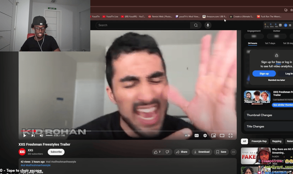 Twitch streamer Yusuf7n found himself in a state of silent confusion after stumbling upon the trailer for XXS Freestyles — a low-budget, surreal parody of XXL’s iconic cypher series. The video was packed with bizarre performances from underground hopefuls, including one solemnly declaring, “There once was a lyrical rapper trapped inside a cage,” and another blurting, “My mom said I’m ugly,” with full emotional conviction. Yusuf sat frozen, eyes scanning the screen in disbelief. After a long pause, he finally muttered, “N word, this is you,” as if calling out the entire internet for allowing this to exist.